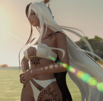 lets get physical ... eliana is on the smaller end of a miqo'te build . a lot of it is just genetic . as mentioned in her background , she was born smaller from the rest of the siblings and left by her family because of her frail build being seen as a burden . although she has become much stronger as she got older she is still on the smaller side and more toned , lithe . her main profession - a summoner - doesn't require as much physical demand as other jobs and therefore she isn't often training hard or doing high intensity exercises . she does enjoy glamouring her clan marks sometimes with tattoos , often floral ones .